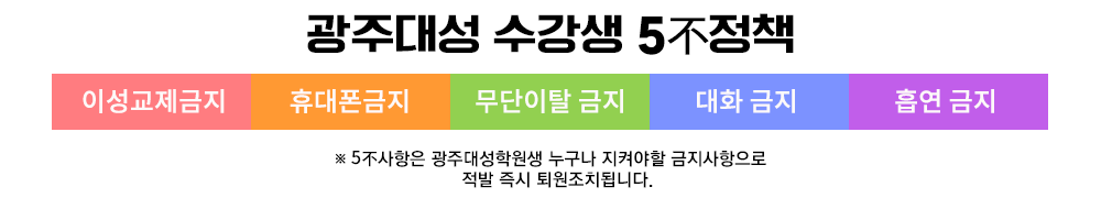 - 학원 내에서는 휴대폰 및 MP3등 전자기기의 소지 및 사용을 일체 금한다.